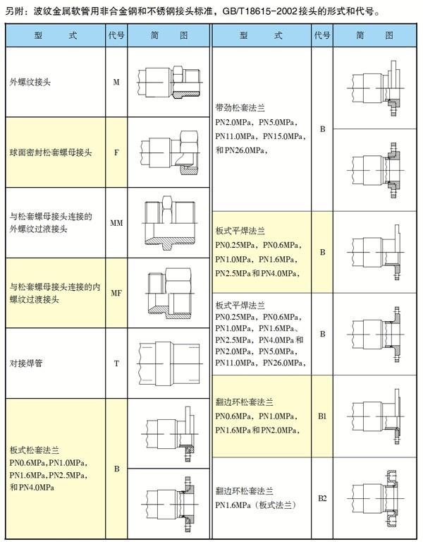 波紋金屬軟管標準接頭型式和代號